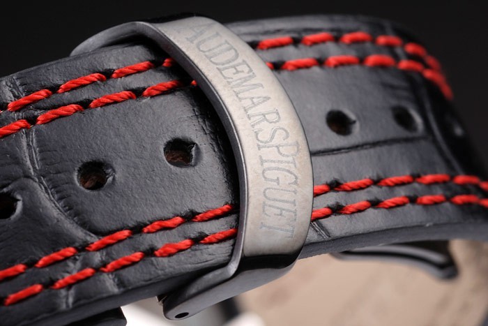 Bracelet en acier inoxydable: Heat gaufré Audemars Piguet crocodile noir bracelet en cuir avec double couture rouge et Audemars Piguet ion plaqué gravé fois en clasp
