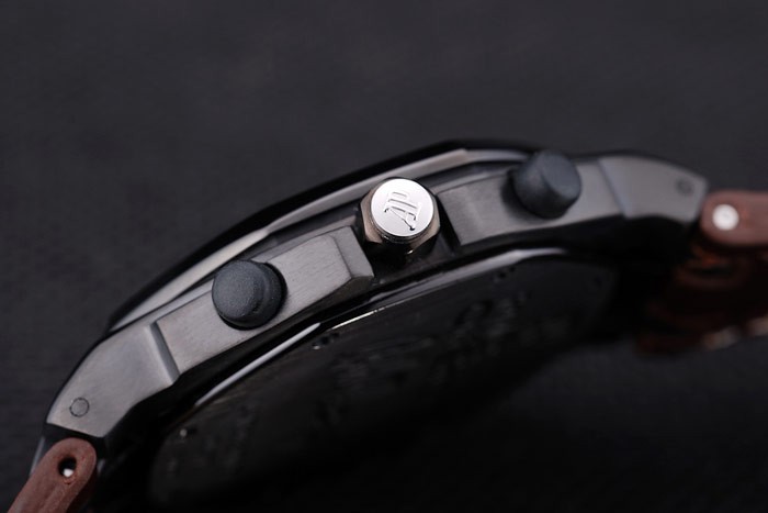 Crown: acier inoxydable Audemars Piguet logo gravé couronne cutwork ion-plaqué avec deux petites couronnes d’ions plaqué de chaque c té de it