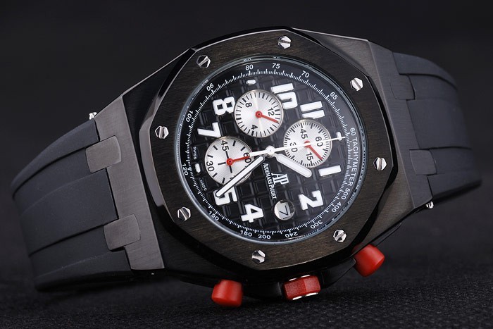 Crown: acier inoxydable Audemars Piguet logo gravé rouge couronne cutwork émail avec deux couronnes plus petites de chaque c té de it