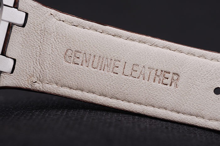 Bracelet: Brown bracelet en cuir de crocodile blanc coutures de fil et de la chaleur en relief nom Audemars Piguet et le logo et une Audemars Piguet inscrits en acier inoxydable flip-dessus le crochet clasp