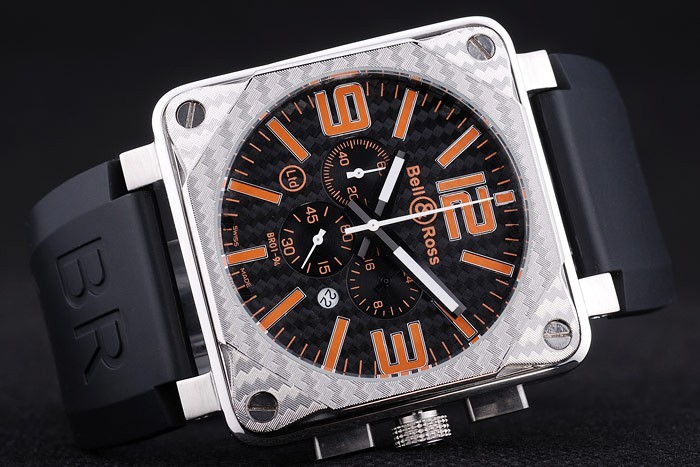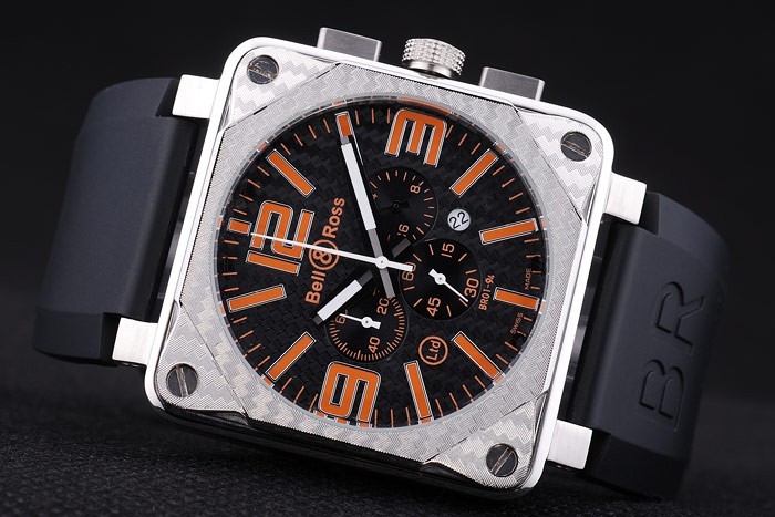Crown: Bell & Ross logo gravé couronne cutwork en acier inoxydable avec rectangulaires à bouton-poussoir couronnes de chaque c té de it