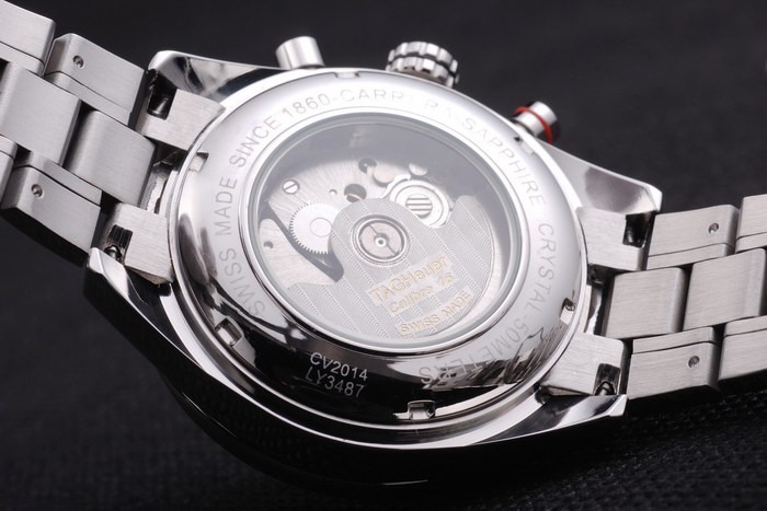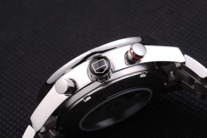 Crown: couronne en acier inoxydable poli avec Tag Heuer logo et deux couronnes plus petites de chaque épaisseur side