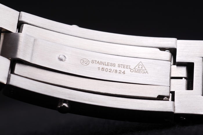 Bracelet: brossé lien bracelet en acier inoxydable avec Omega inscrit rabattable dans le déploiement clasp
