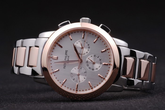 Crown: couronne en acier inoxydable poli avec Patek logo gravure et deux couronnes plus petites de chaque épaisseur side