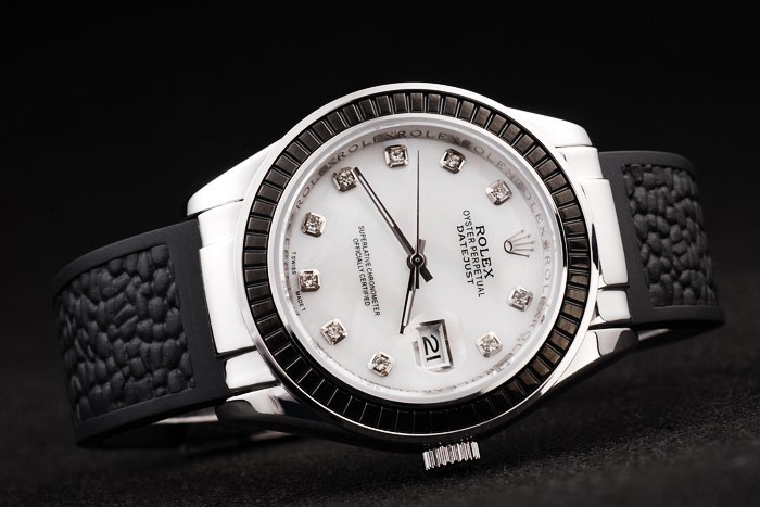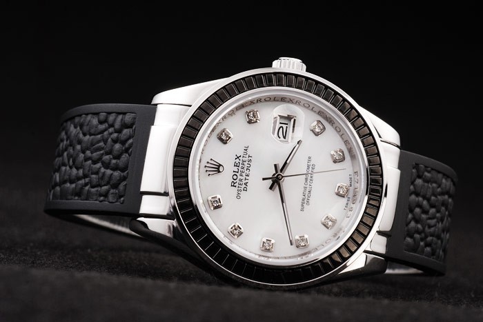 Bracelet en acier inoxydable: Con u bracelet en caoutchouc noir avec Rolex gravé pli en boucle avec Rolex logo gravé sur top