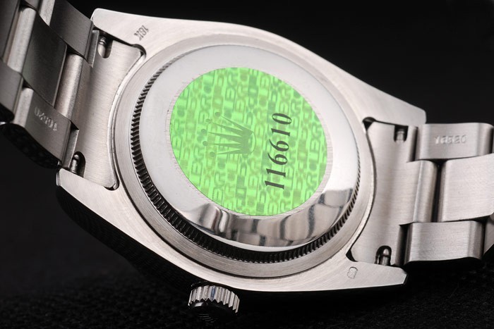 Retour: Acier inoxydable de cas de poussée en arrière avec vert Rolex logo stamp