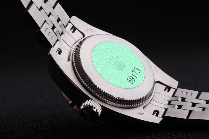 Retour: Acier inoxydable de cas de poussée en arrière avec le vert Rolex logo stamp