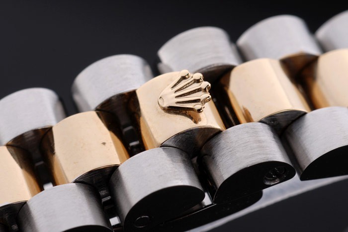 Crown: plaqué or jaune 18k couronne cutwork en acier avec Rolex logo