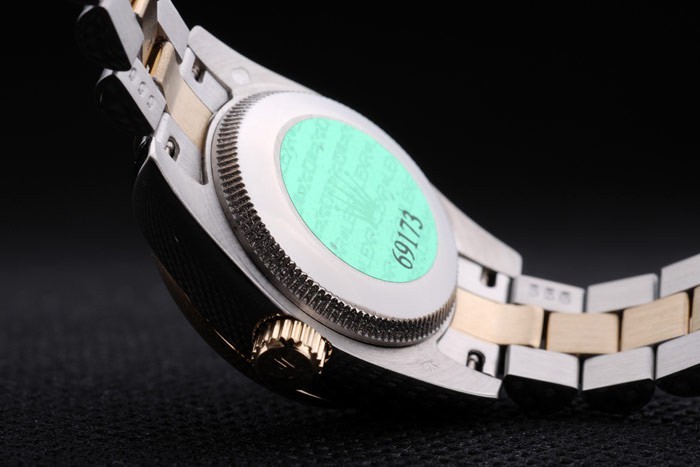 Retour: Acier inoxydable push-en affaire avec le vert Rolex logo stamp