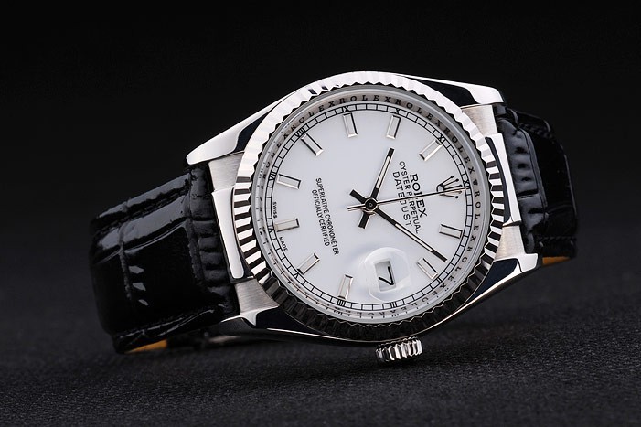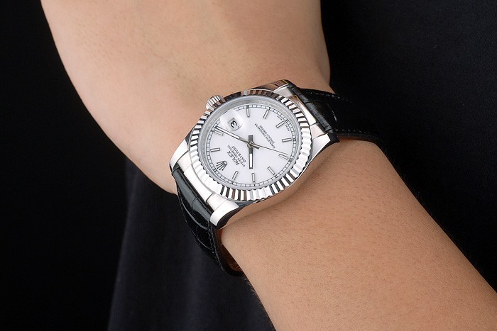 Bracelet en acier: Bracelet en cuir de crocodile avec gravure Rolex plier en boucle déployante affichage Rolex logo