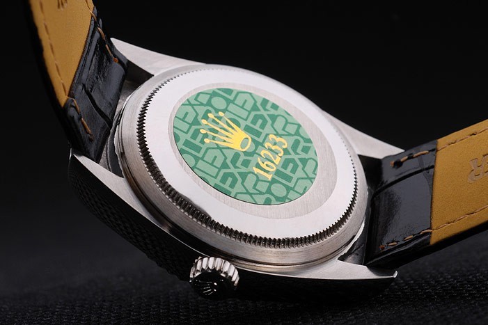 Retour: Acier inoxydable de cas de poussée en arrière avec vert Rolex logo stamp