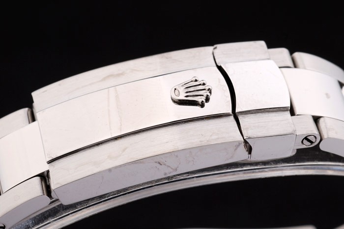 Bracelet: brossé et poli inoxydable cha ne à maillons en acier Boucle déployante et Rolex couronne engraving