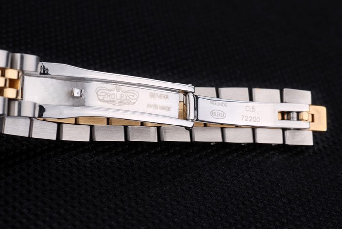 Bracelet en acier: Deux lien tonique bracelet en acier inoxydable brossé et plaqué or jaune 18 carats acier avec gravure Rolex fermoir caché l’affichage de la longueur Rolex logo