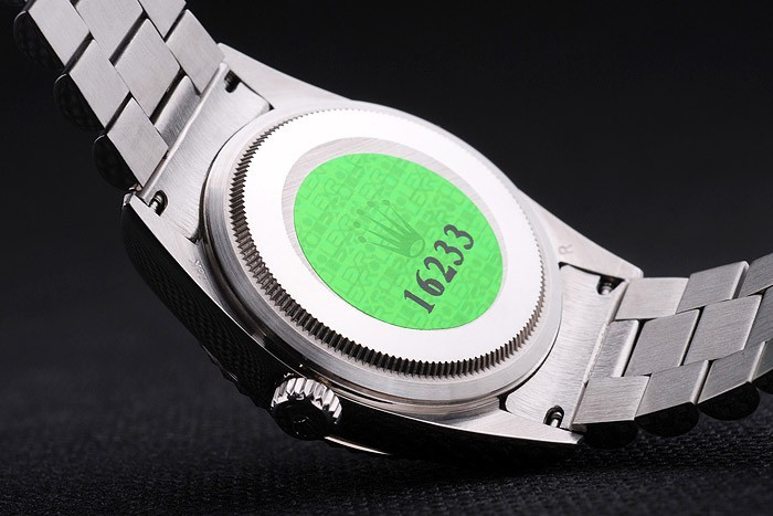 Retour: Acier inoxydable de cas de poussée en arrière avec vert Rolex logo stamp