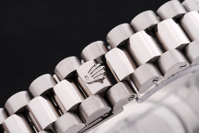 Bracelet: brossé et poli inoxydable cha ne à maillons en acier Boucle déployante Rolex couronne engraving