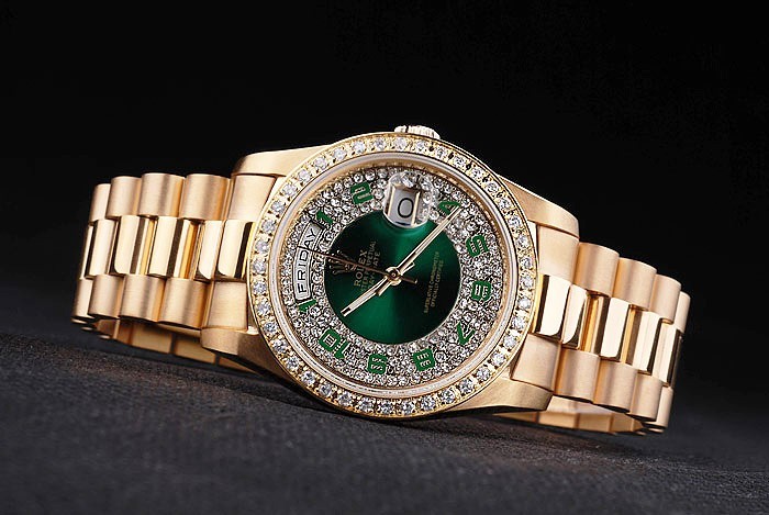 Retour: plaqué or jaune 18k inoxydable cas de poussée en arrière en acier avec le vert Rolex logo stamp