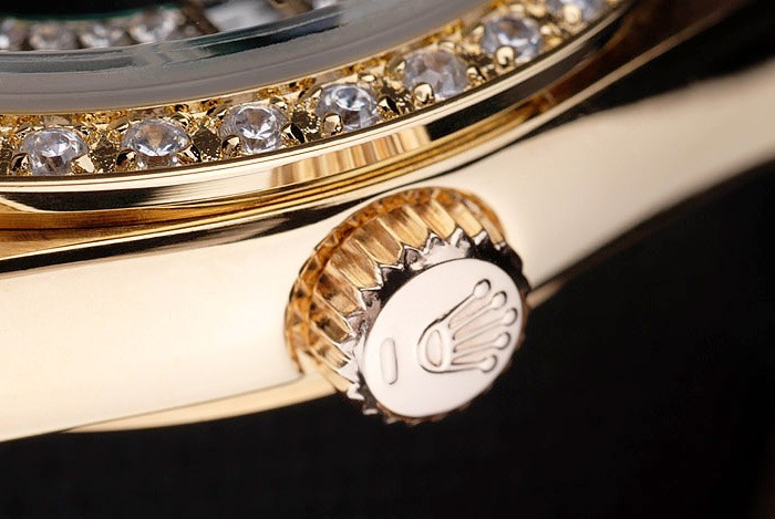 Crown: plaqué or jaune 18k couronne cutwork en acier avec Rolex Epaisseur logo