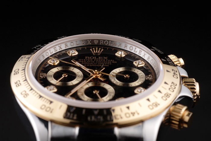 Bezel: 18k lunette en or jaune avec des unités noires par heure Type de marker