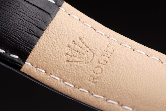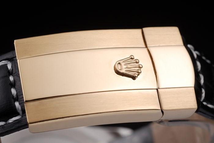 Bracelet en acier inoxydable brossé: crocodile Bracelet en cuir noir avec Rolex gravé or jaune 18 carats pliez en boucle déployante affichant la Rolex logo