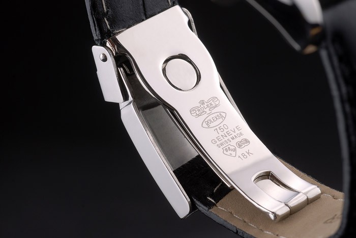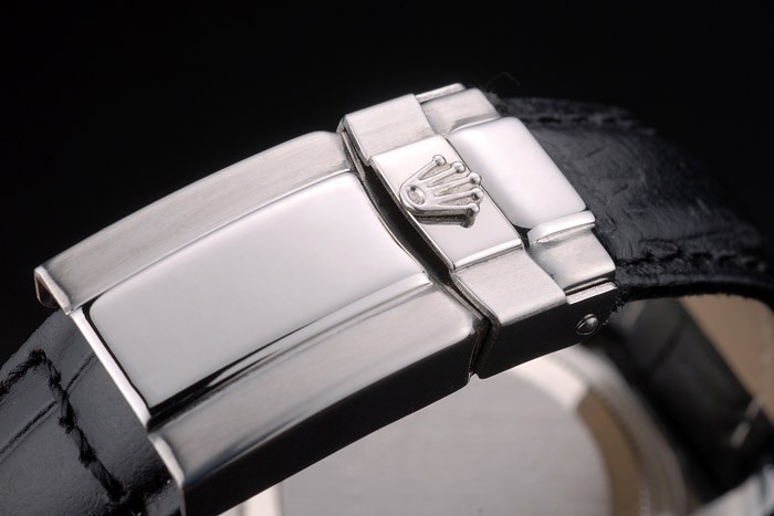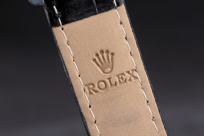 Bracelet en acier inoxydable brossé: Rolex en relief crocodile noir bracelet en cuir de chaleur avec gravé en acier inoxydable boucle déployante avec logo Rolex sur top