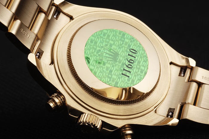 Retour: Rose-or push-dans le dos avec le vert Rolex logo stamp
