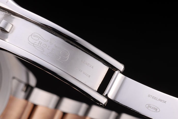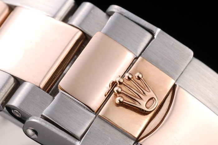 Bracelet en acier plaqué or rose et acier inoxydable brossé lien en acier bracelet avec gravé boucle déployante avec logo Rolex sur top