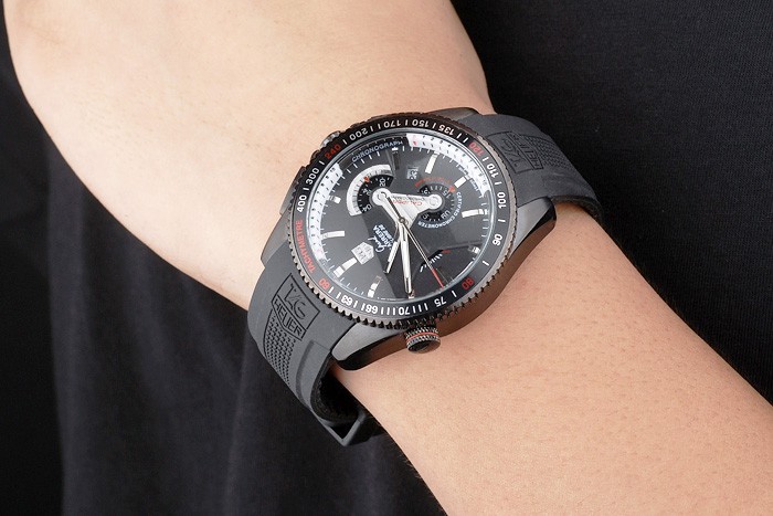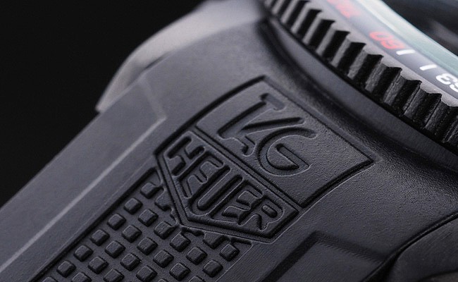 Bracelet en acier inoxydable: texturé bracelet en caoutchouc noir avec la chaleur en relief et gravé crochet timbre Tag Heuer clasp