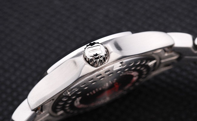 Crown: couronne cutwork en acier inoxydable poli avec Tag Heuer logo ainsi que deux couronnes supplémentaires, une de chaque épaisseur side