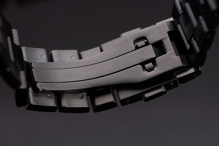 Bracelet en acier inoxydable: Ion plaqué lien bracelet en acier inoxydable avec Tag gravure Heuer sur le dessus et un pli-over en céramique fermoir avec poussoir button