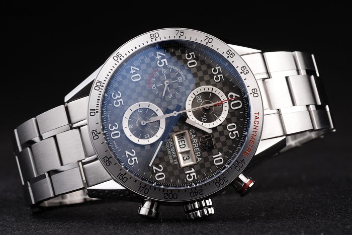 Crown: couronne cutwork en acier inoxydable poli avec Tag logo Heuer ainsi que deux couronnes supplémentaires sur les deux Epaisseur side